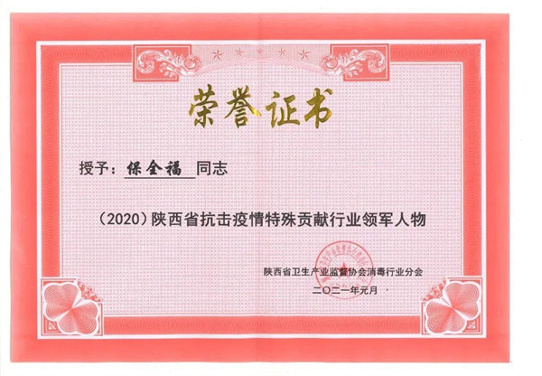 2021年1月獲得“陜西省抗擊疫情特殊貢獻(xiàn)行業(yè)領(lǐng)軍人物”;