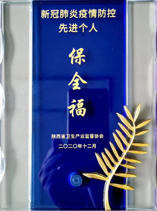 2020年12月獲得“陜西省新冠肺炎疫情防控先進(jìn)個(gè)人”;